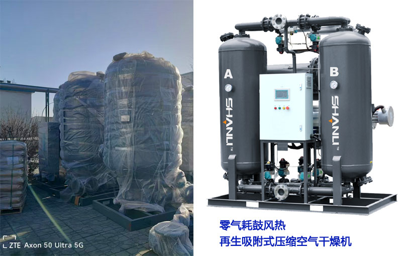 以内蒙古自治区某大型化工企业为例,因生产工艺需求配置了多台大功率空压机,此前长期配套传统有气耗干燥机使用。受限于传统设备的技术短板,干燥机在再生过程中需消耗大量成品压缩空气,导致空压机需持续高负荷运转以弥补耗气缺口,每年仅空压站与干燥机的综合运行费用便十分高昂,成为企业降本增效的一大阻碍。为解决这一痛点,企业明确提出 “更换高效干燥设备、降低压缩空气损耗、削减运行成本” 的需求,并对市场主流干燥机产品进行了多轮性能、能耗、稳定性对比测试。最终,我司零气耗鼓风热再生吸附式压缩空气干燥机凭借突出的节能优势与可靠的性能表现,成功赢得业主青睐,成为其升级改造的首选产品。